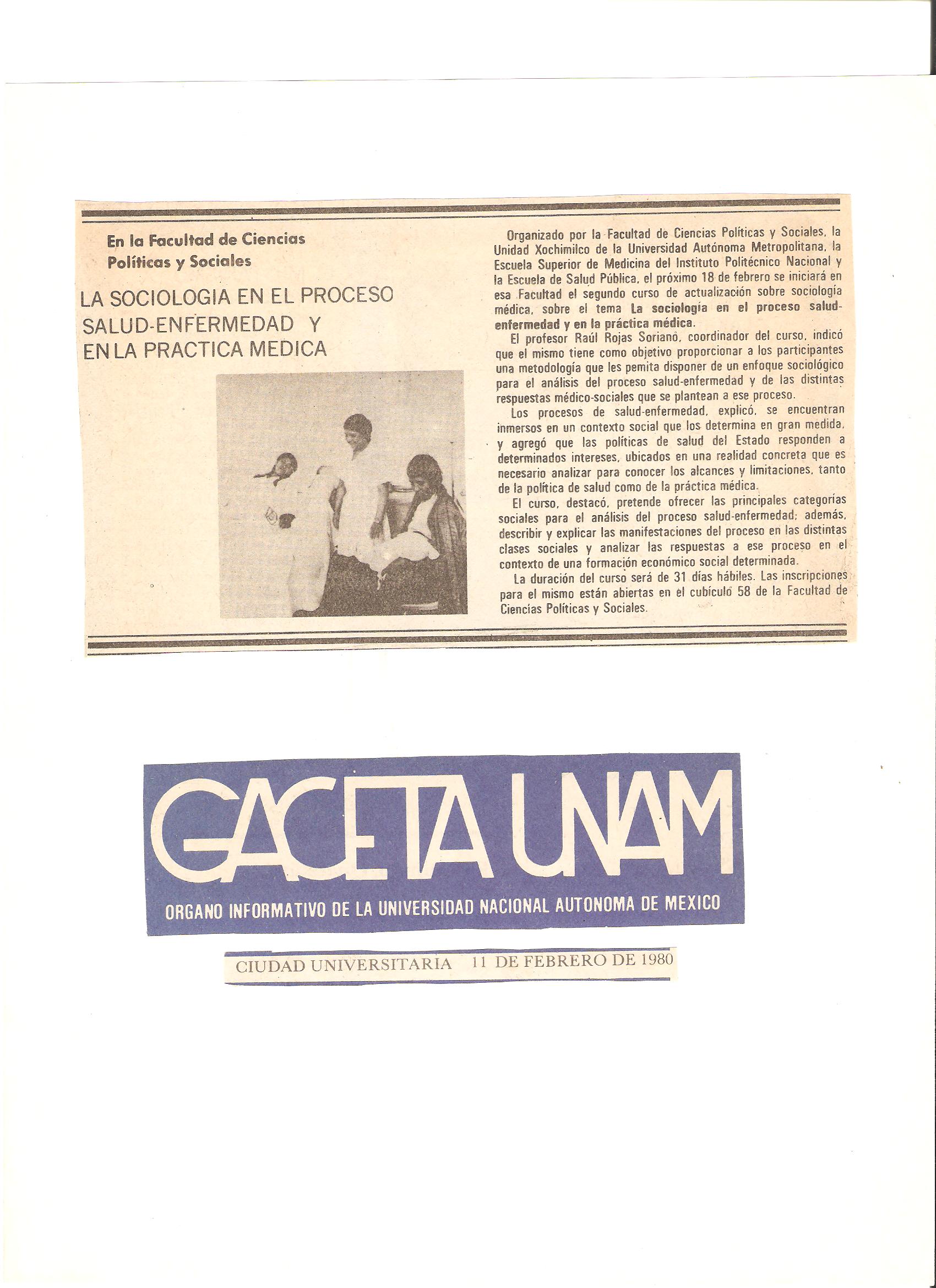 3. Gaceta informativa de la Facultad de Ciencias Políticas y Sociales, UNAM, Ciudad de México, México.