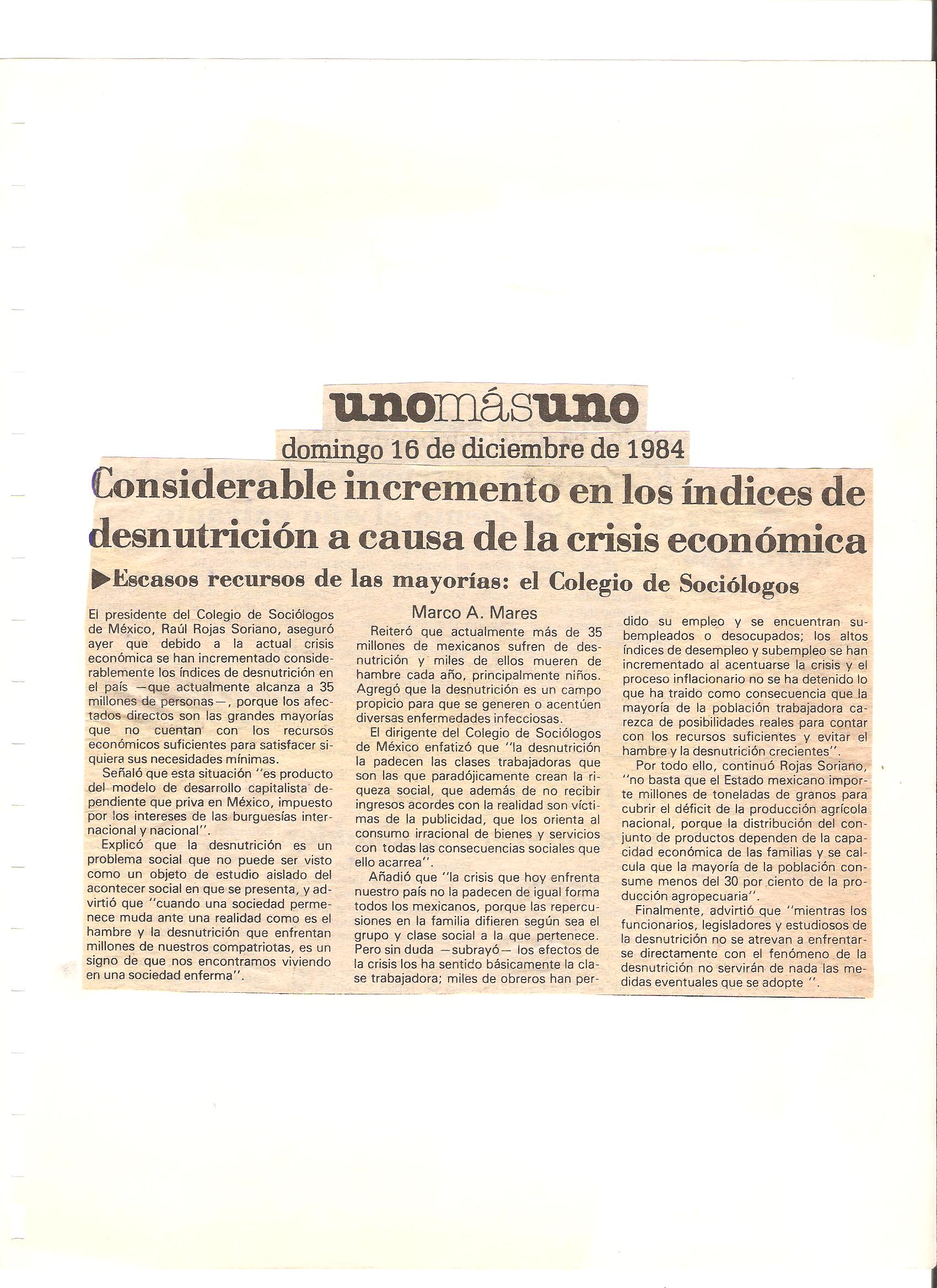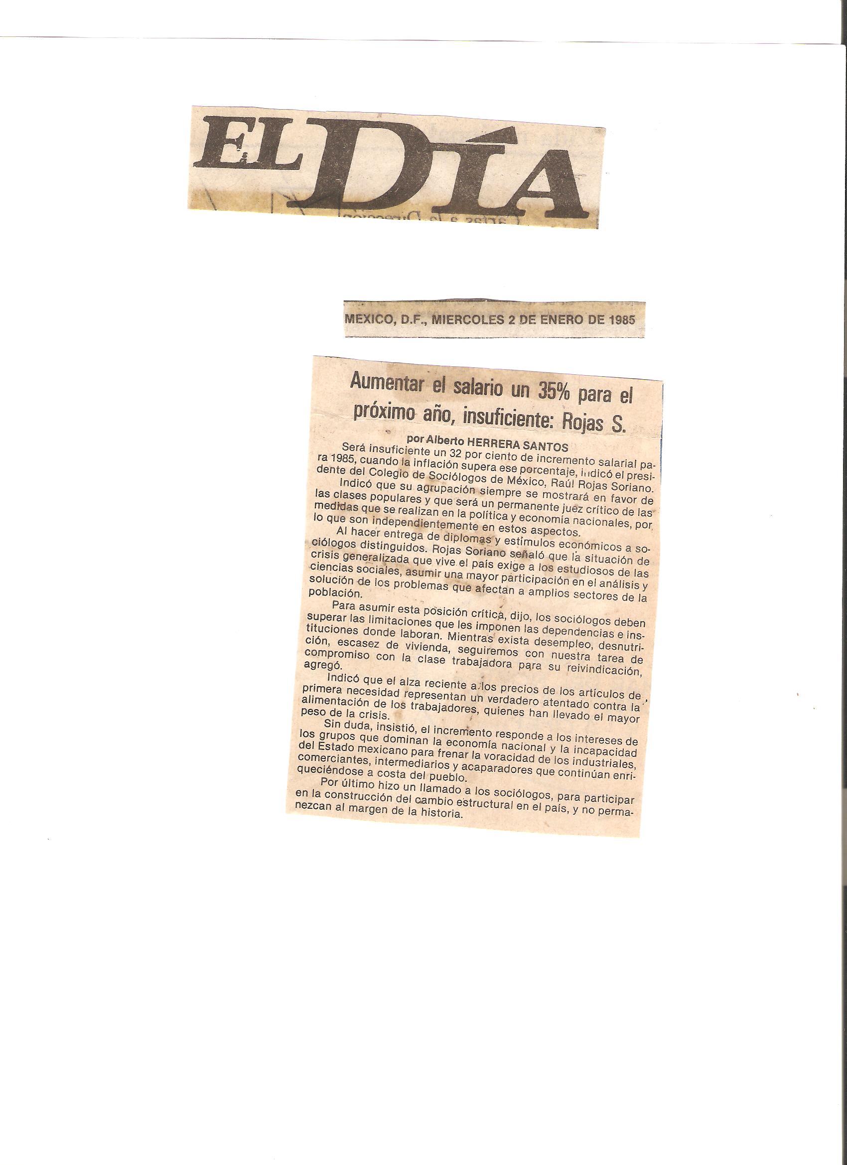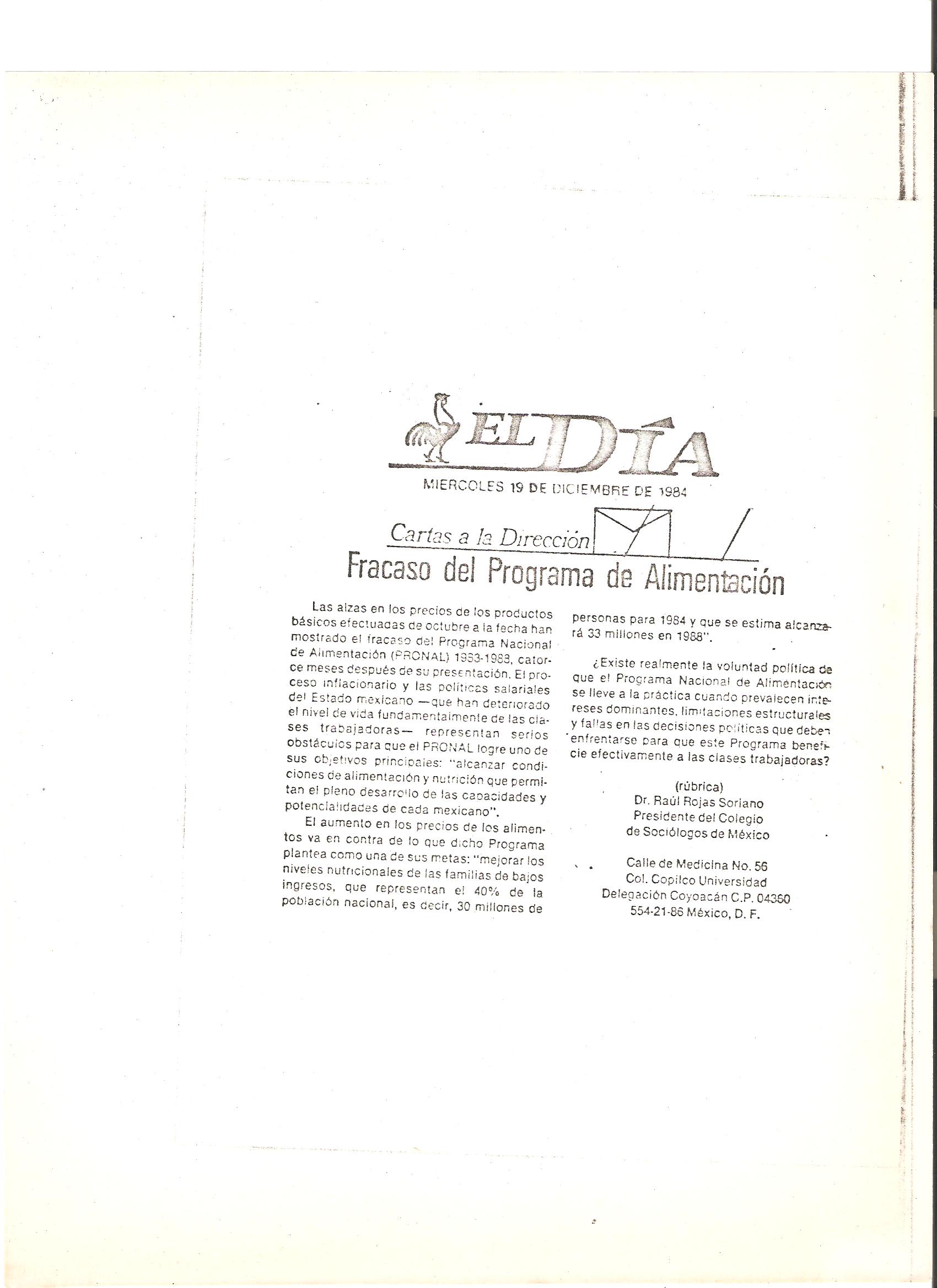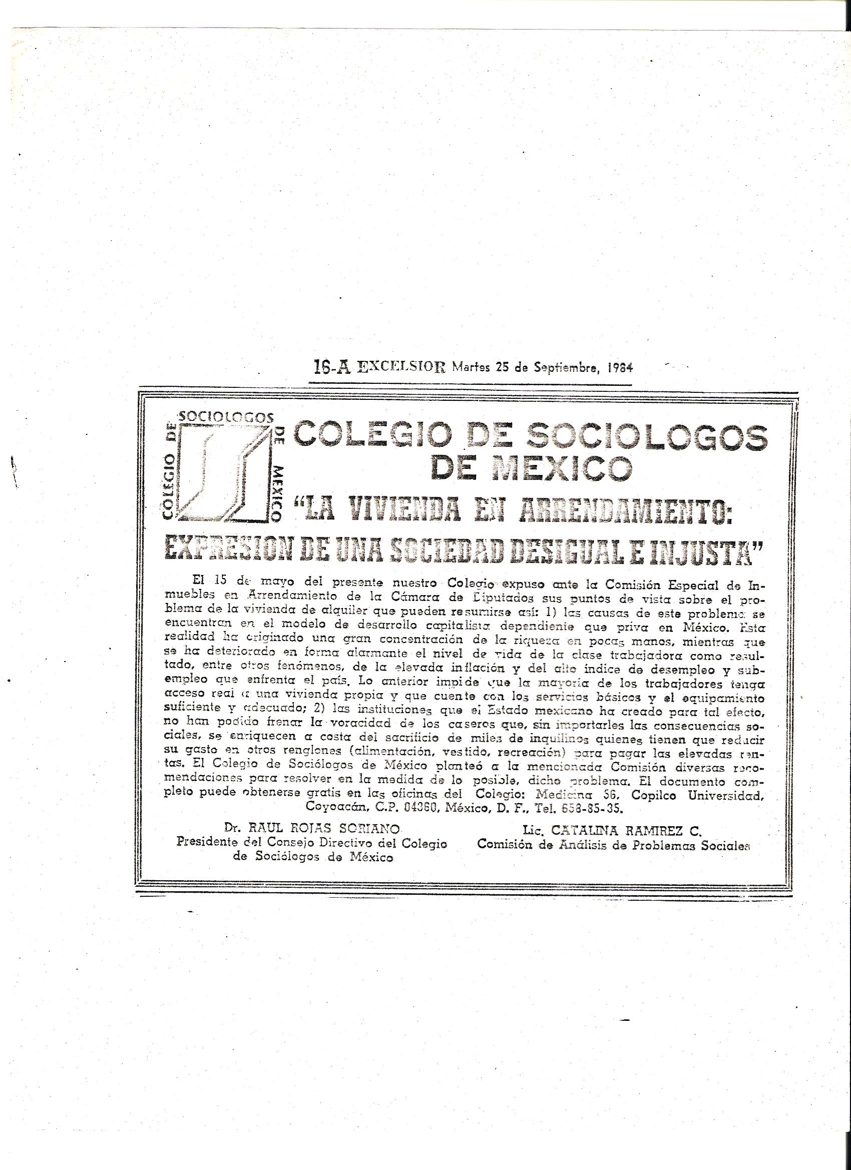 Algunos de los periódicos y revistas de México que entrevistaron al Dr. Raúl Rojas Soriano, o en los que se publicaron sus actividades profesionales, académicas y de transformación social cuando fue presidente del Colegio de Sociólogos de México, A.C. (abril de 1984 a abril de 1986)