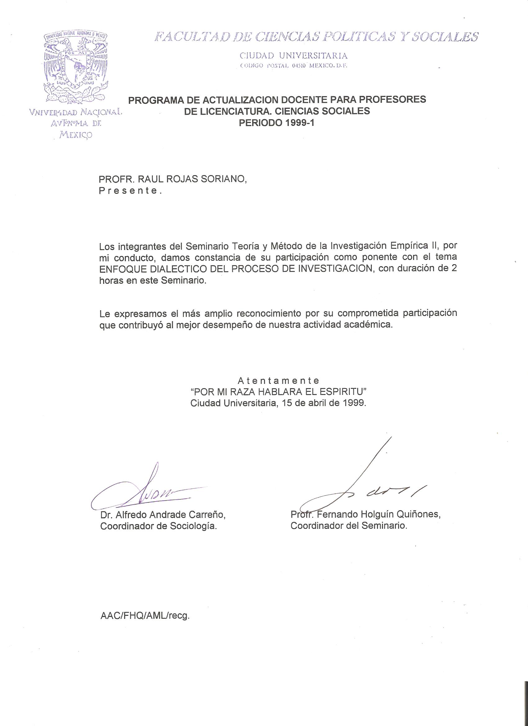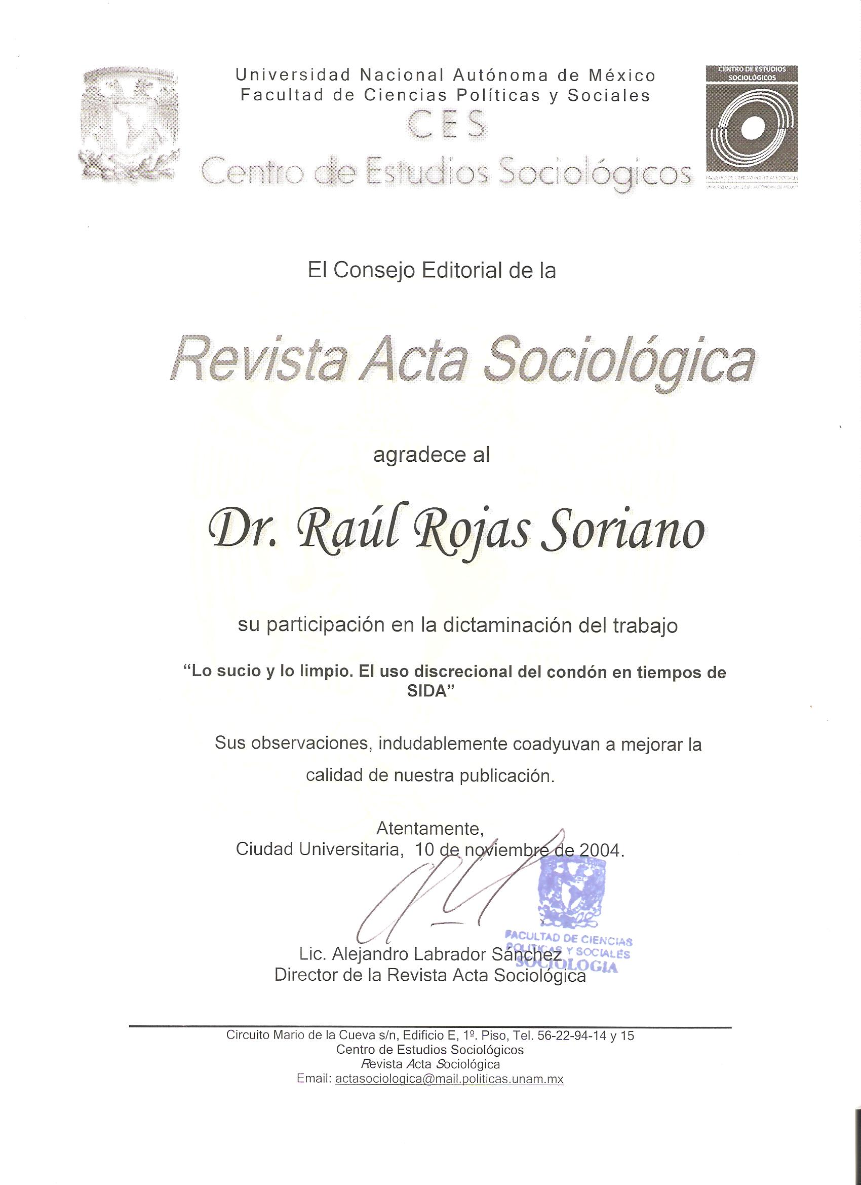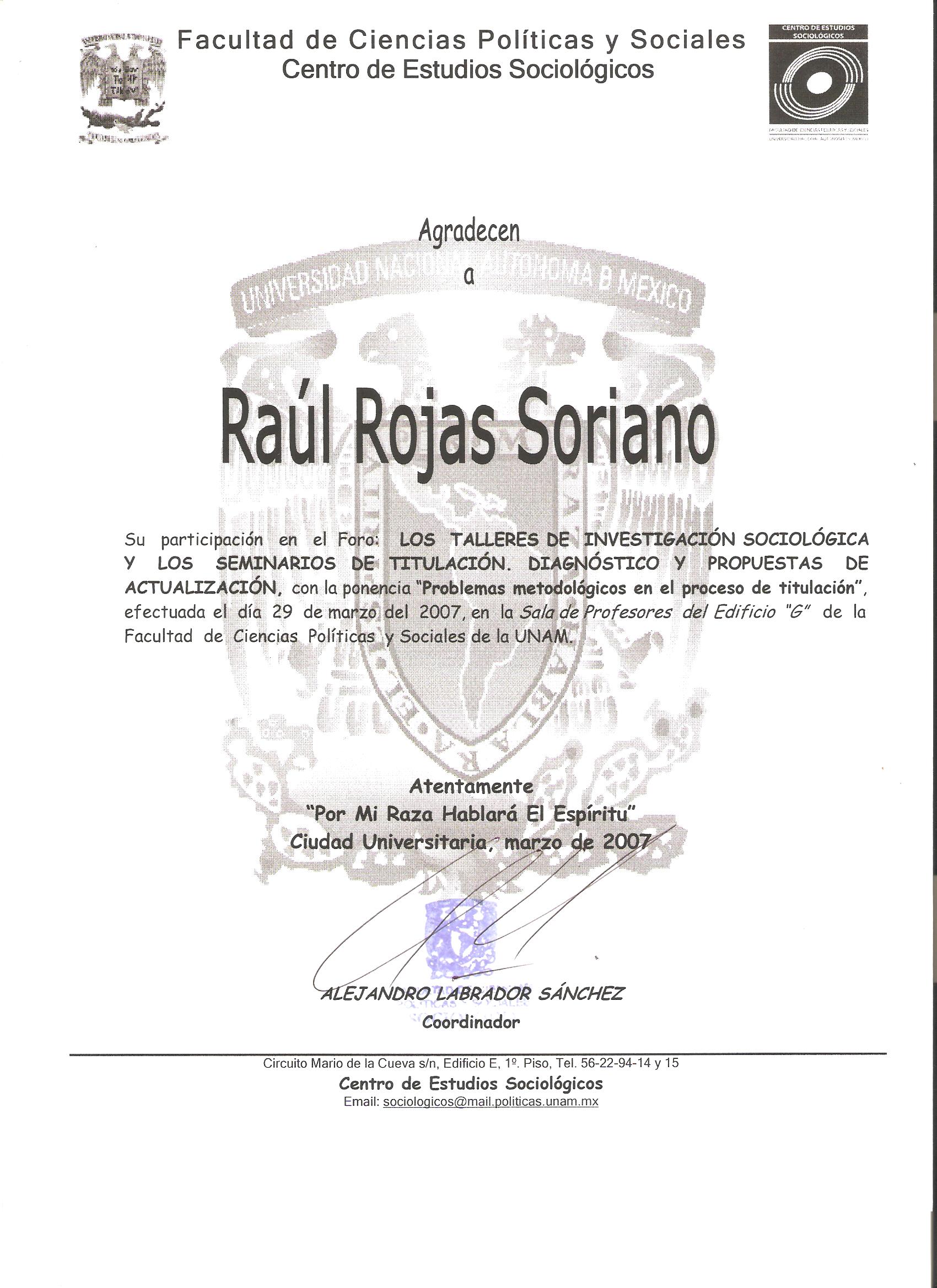 Reconocimiento a la obra del Dr. Raúl Rojas Soriano,