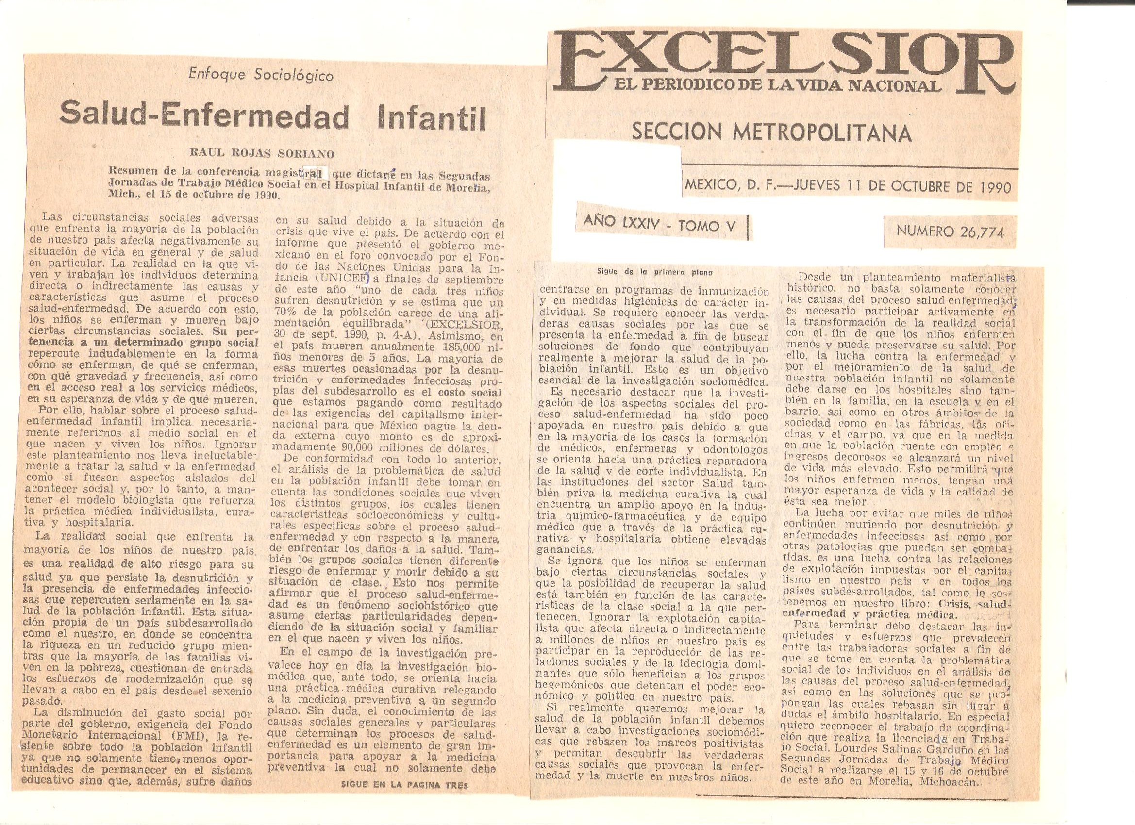 30. “Salud-enfermedad infantil”. 11 de octubre de 1990.