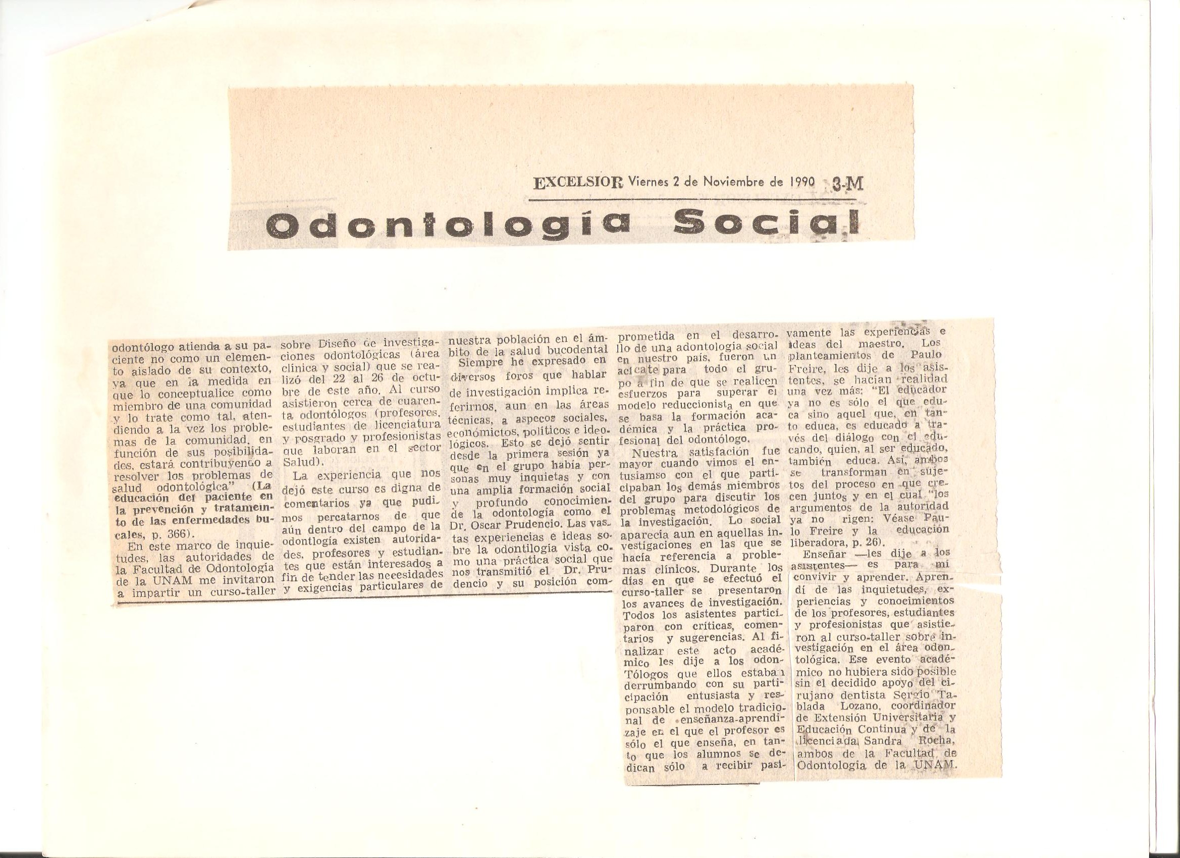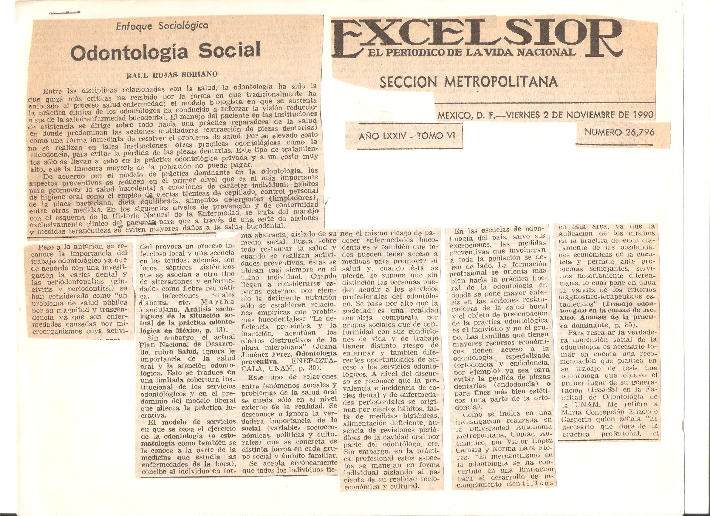 31. “Odontología social”. 2 de noviembre de 1990.