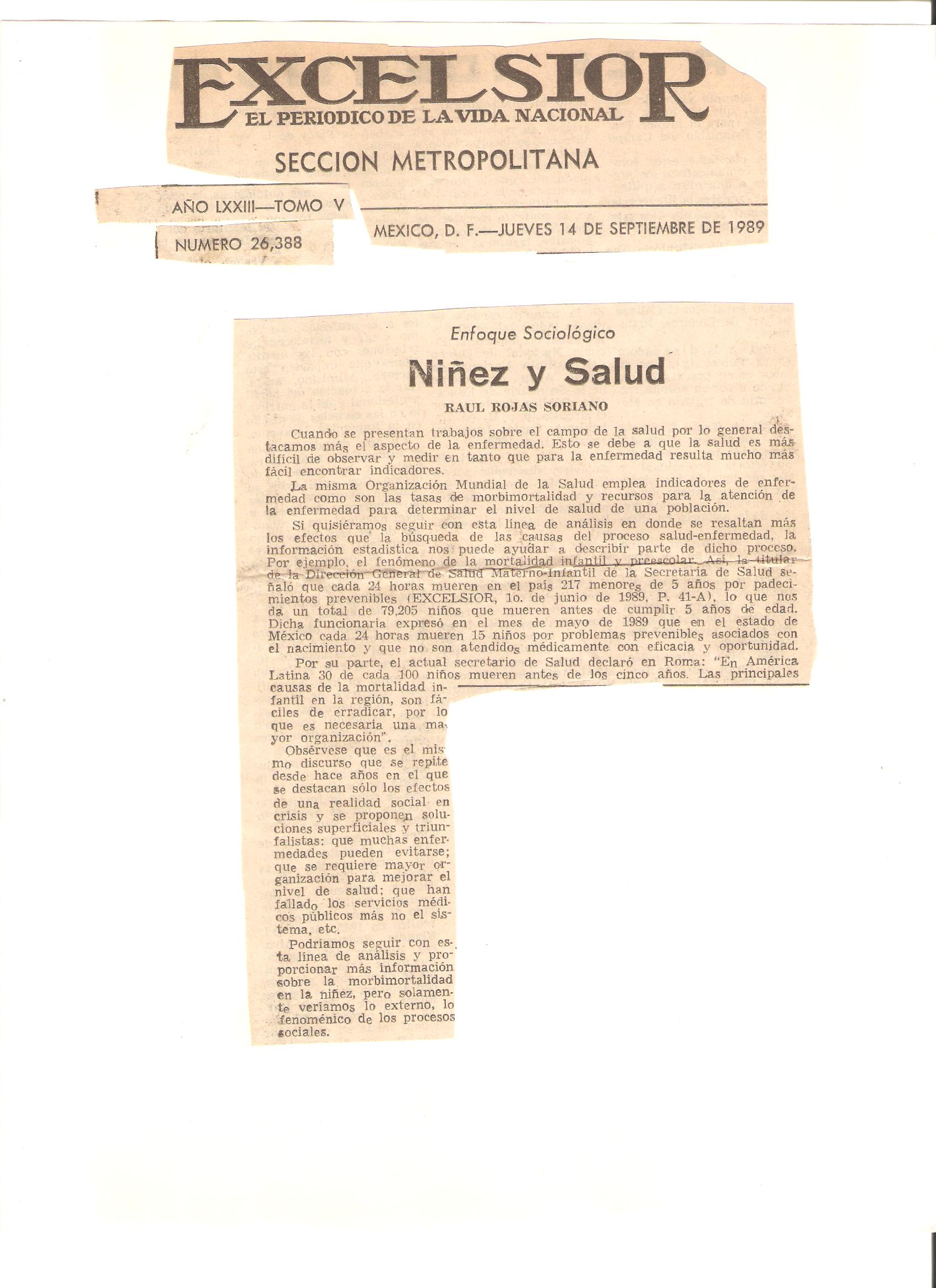 26. “Niñez y salud”. 14 de septiembre de 1989.
