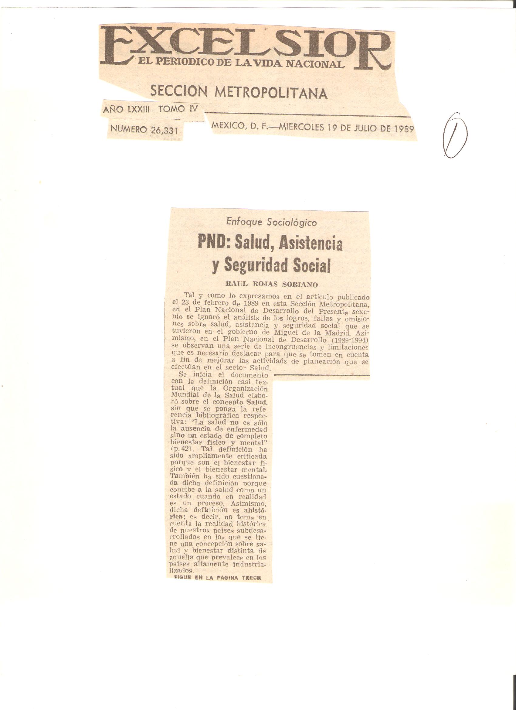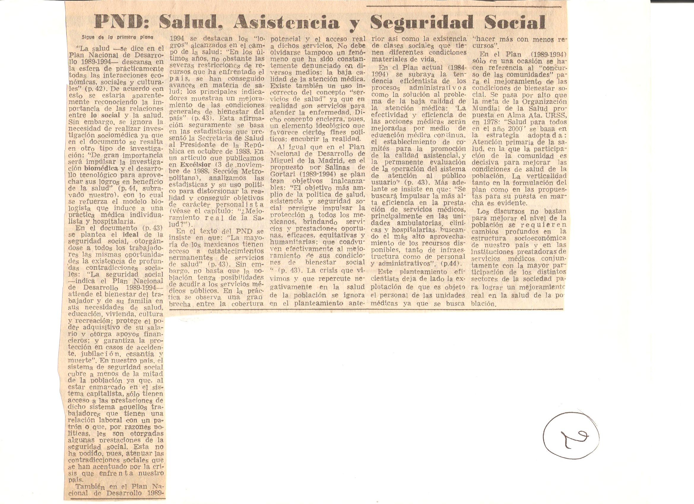 28. “PND: Salud, asistencia y seguridad social”. 19 de julio de 1989.