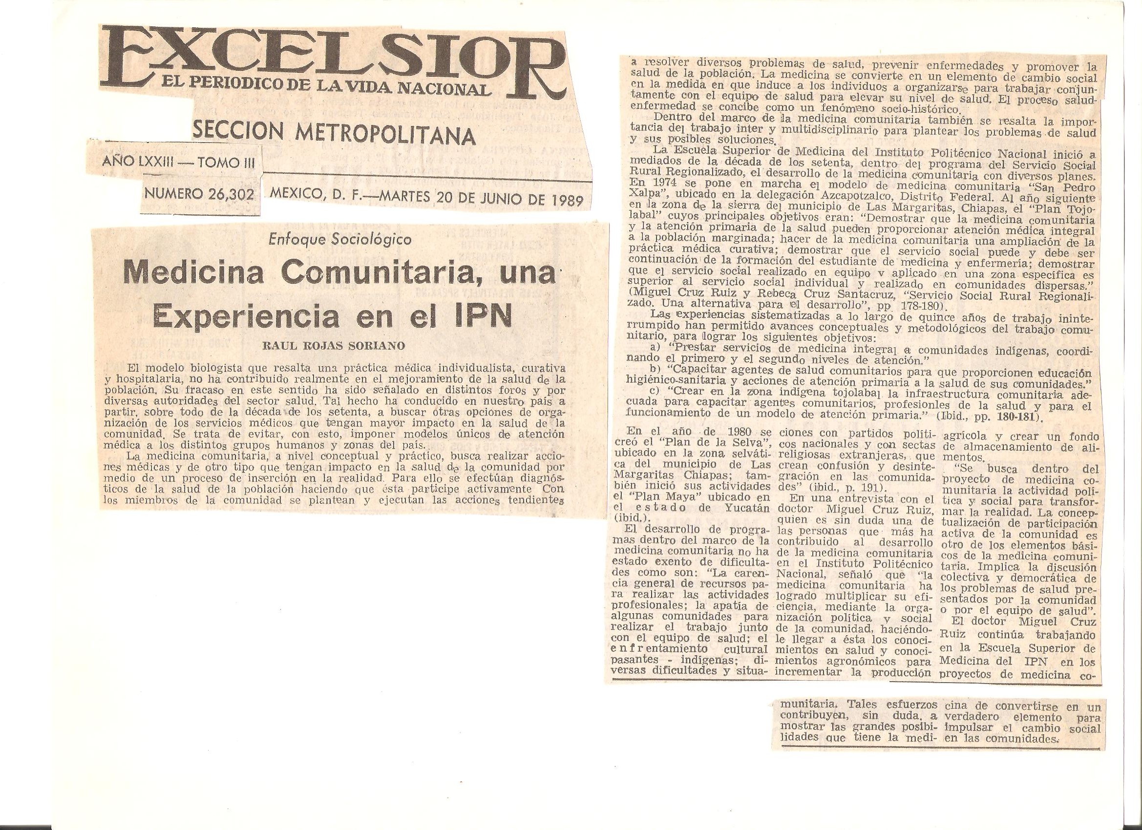 27. “Medicina comunitaria, una experiencia en el IPN”. 20 de junio de 1989.