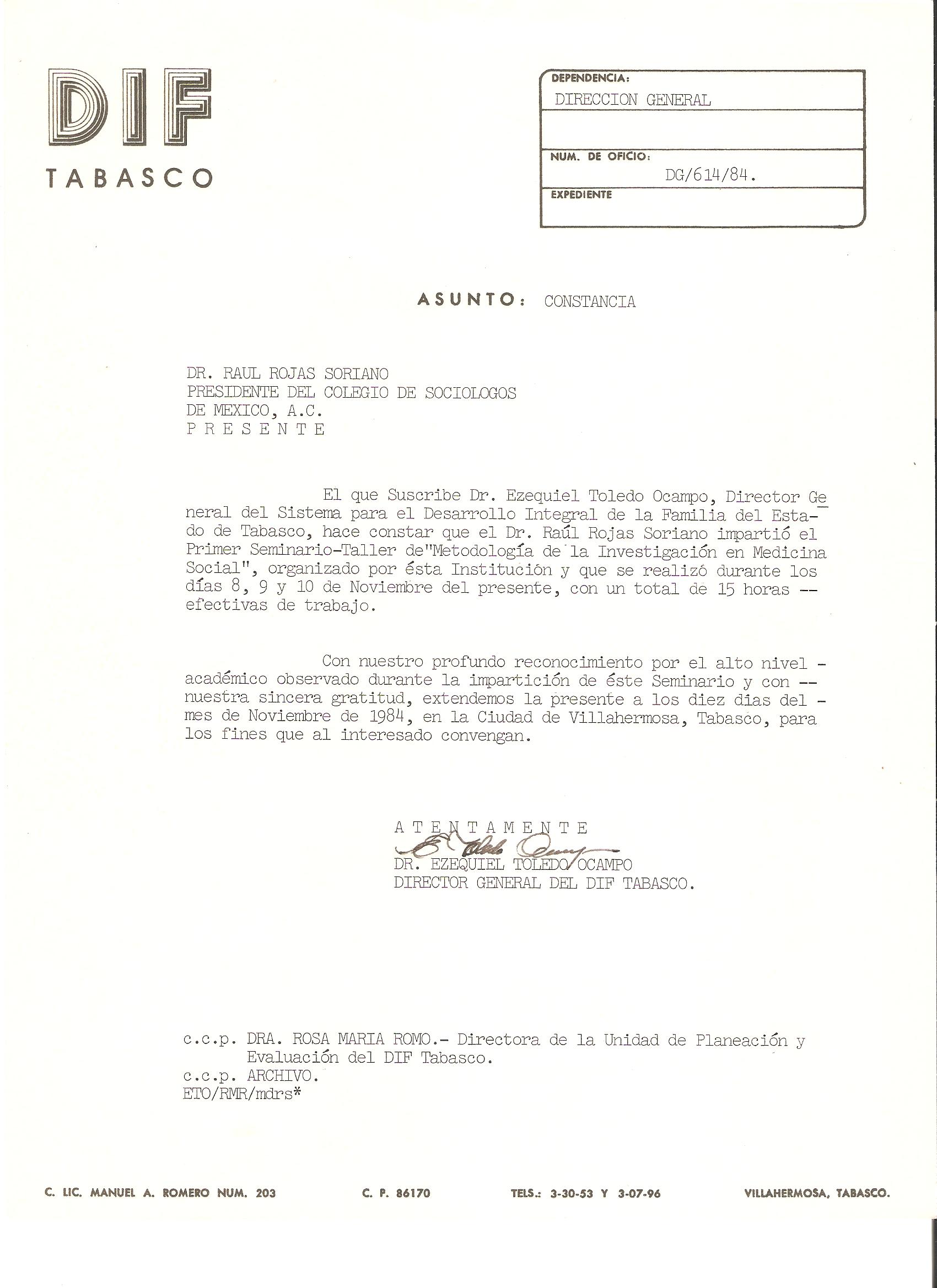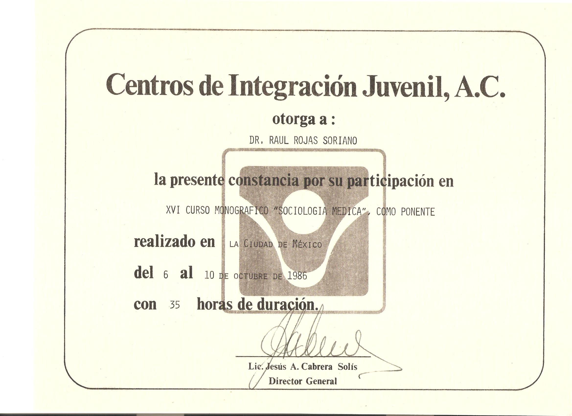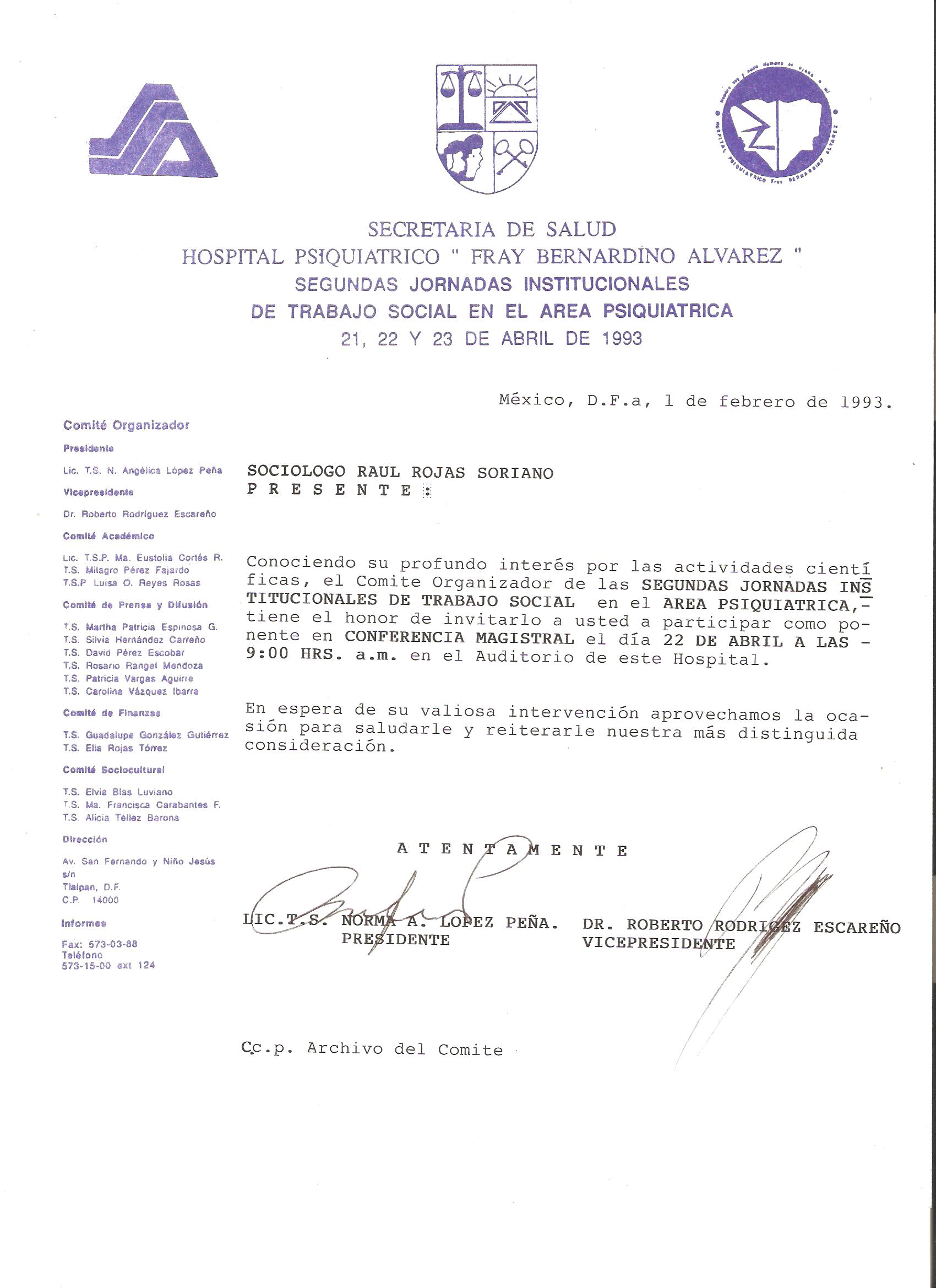 Raúl Rojas Soriano como presidente del Colegio de Sociólogos de México A.C (1984-1986)