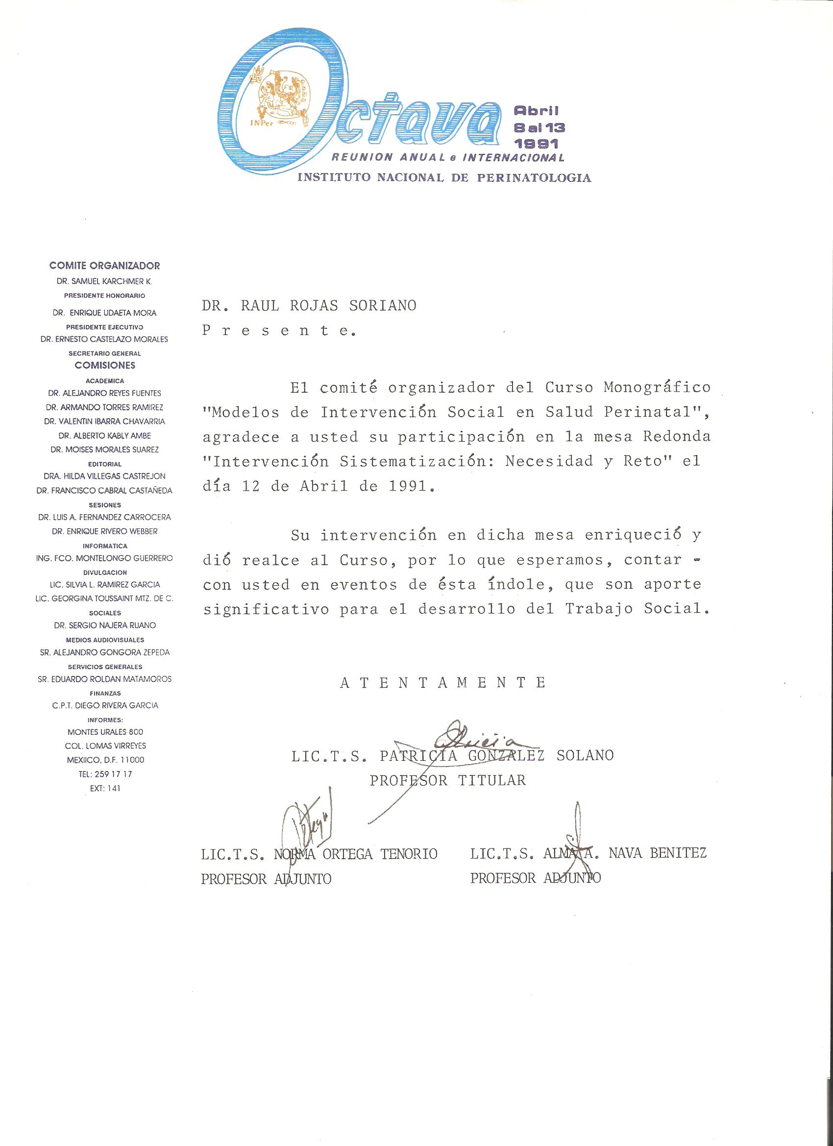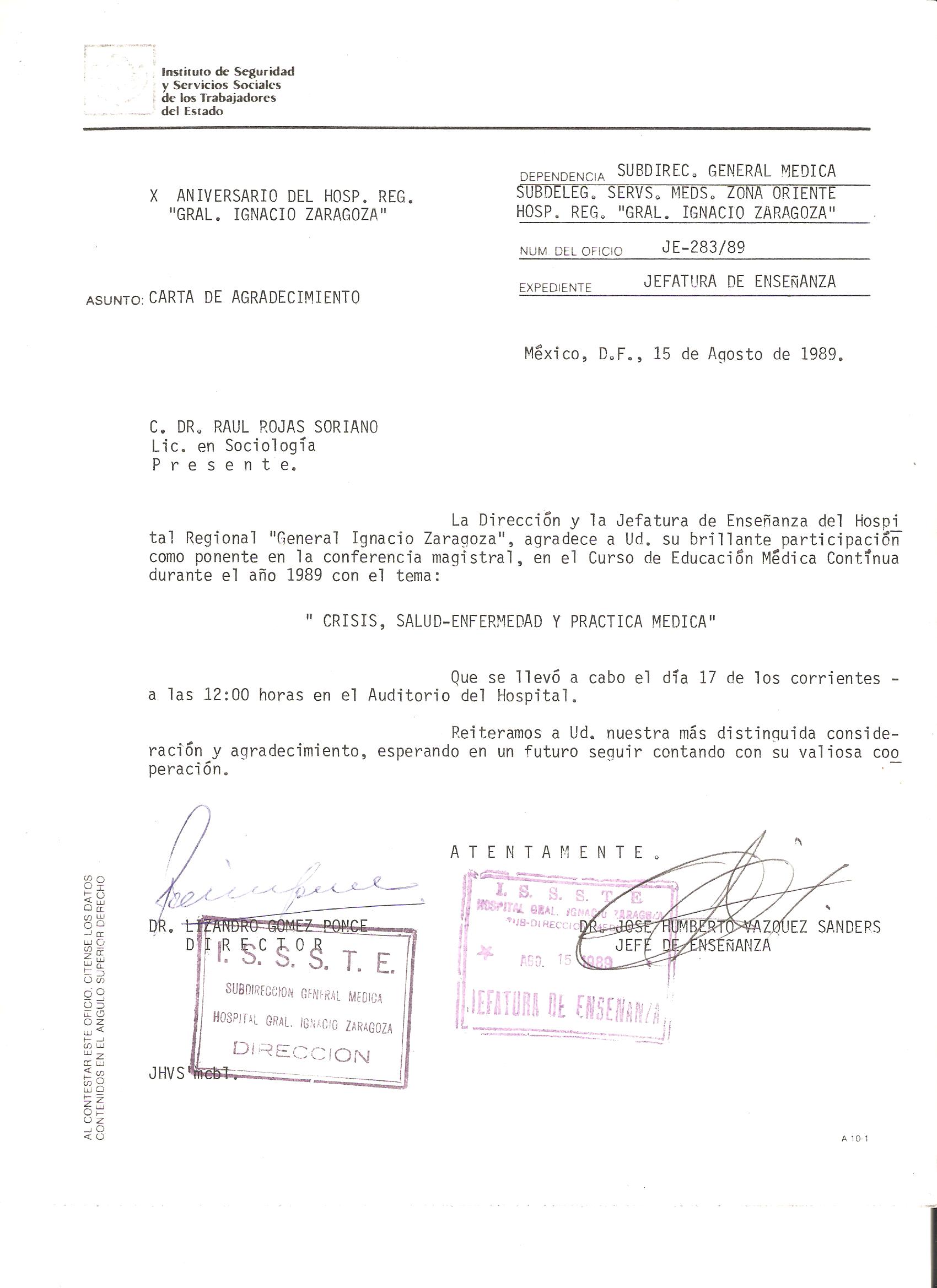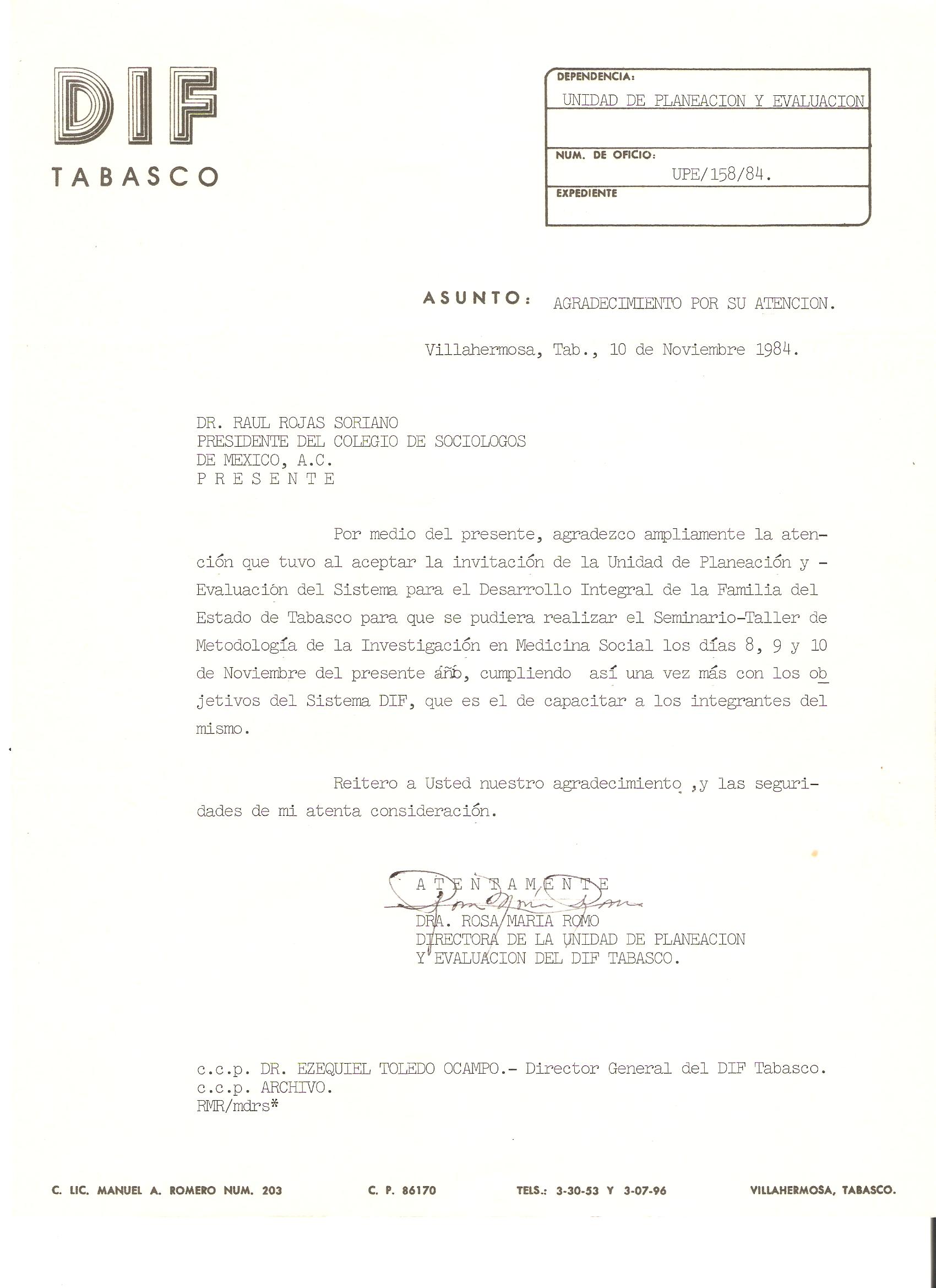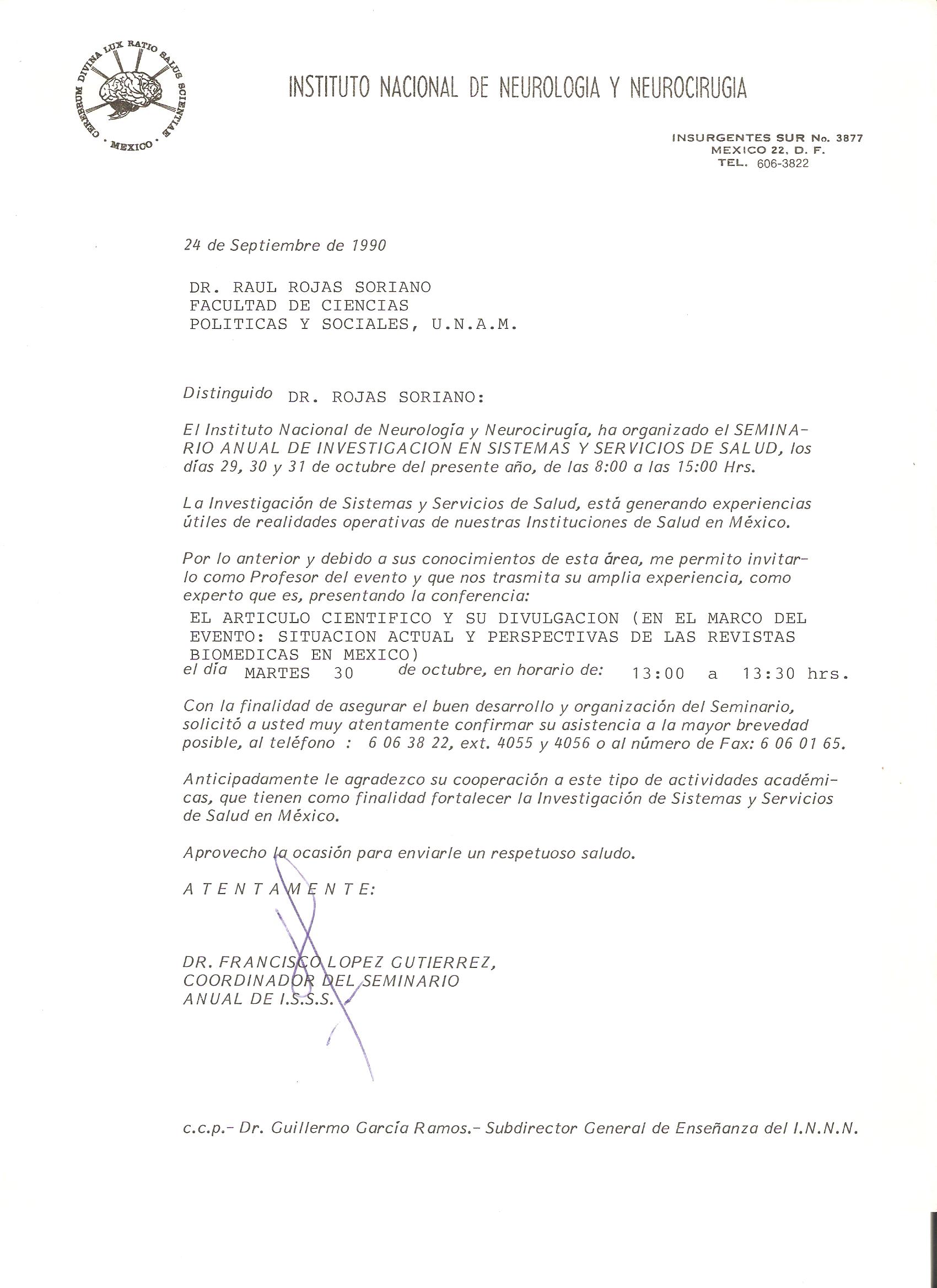 Raúl Rojas Soriano como presidente del Colegio de Sociólogos de México A.C (1984-1986)