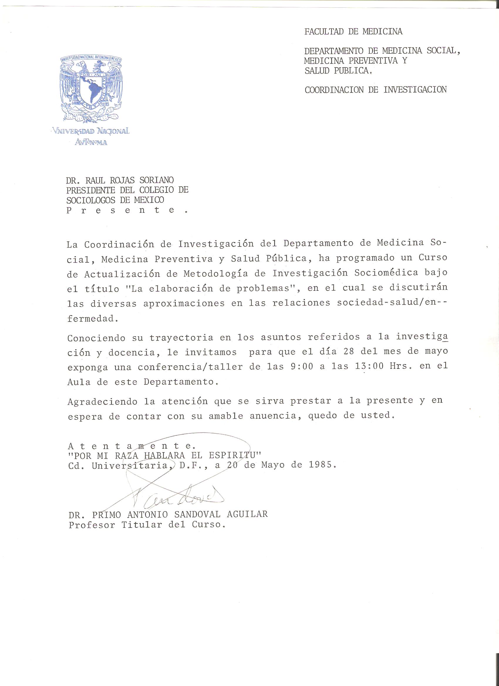 Gestión como presidente del Colegio de Sociólogos de México A.C. (1984-1986)